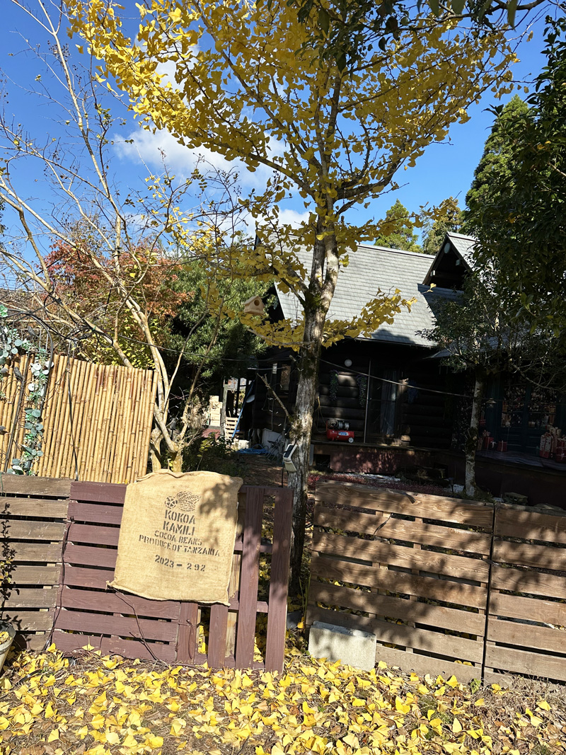 ショップ内は、壁際に多数のカテゴリー別に色分けされた板チョコ、中央のテーブルには、新作のチョコレートやお菓子、カカオニブ、ホットチョコレートなどが配置されています。 また、冷蔵を必要とする商品は、黒い冷蔵庫、定温庫の中に陳列しています。 昔、縁側として利用されていた南側のスペースには、木製の大きなテーブルを2台、そして木製の椅子を6個置いています。 ここが室内でのカフェスペースで、屋外のガーデンを眺めながら寛ぐことができます。