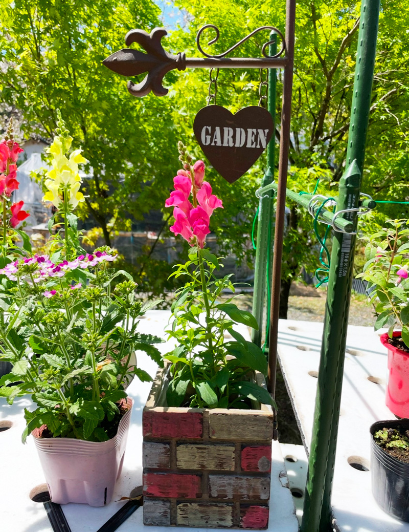 ガーデンは、1年かけてDIYにて店主が整備したものです。 四季を通じて咲く花々を庭の各所に配置し、土を覆うグランドカバーのハツユキカズラとクラビアが異空間を演出しています。 夏は、全面、緑に覆われ、秋は、初雪カズラが赤い絨毯を造ってくれます。